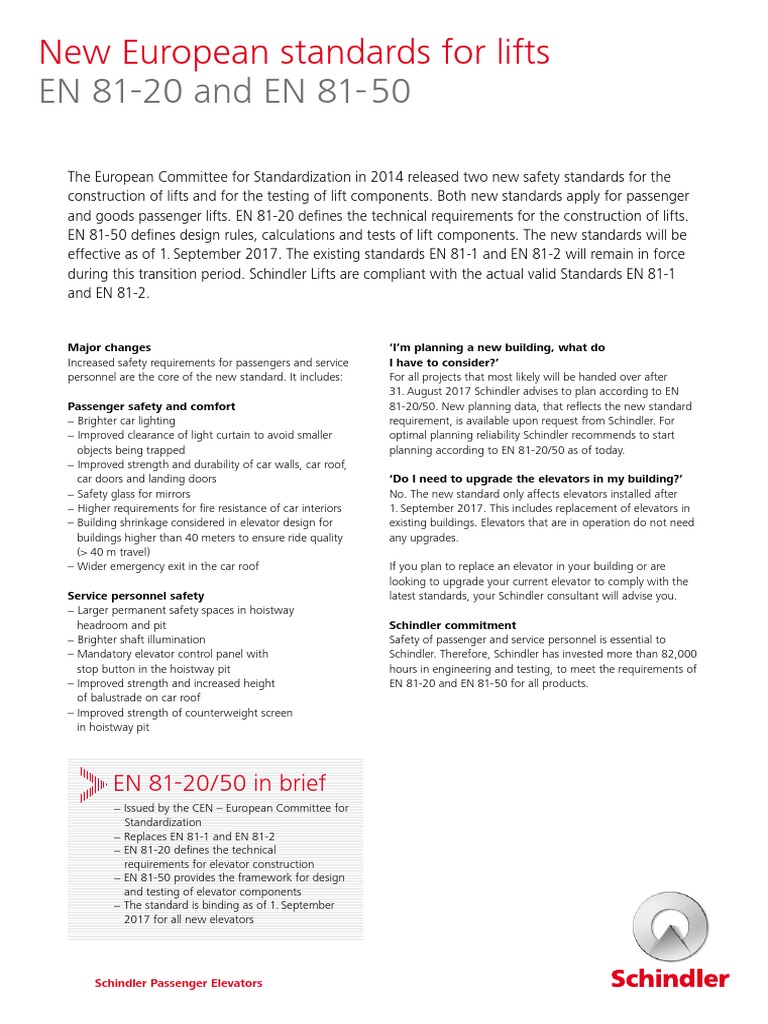 Factsheet Elevator Norms En81 20 En81 50 Pdf Elevator Building